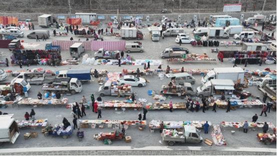 六道河大集的热闹,是和天光一起醒来的。天刚蒙蒙亮,摊主们就忙着摆货、吆喝,赶早的村民提着布袋、拉着小车,三三两两走进集市。赶上气温回升,风里已经有了春天的味道。