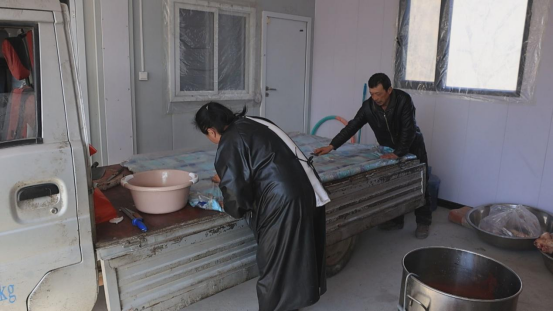 再难,也得从头干起。政府最先保障的是群众的基本生活。尉庆友和妻子谢海伶很快领到了米面油、炊具还有被褥。为了让老百姓尽快恢复生产生活,镇里和村里搞起了一对一帮扶。尉庆友的新板房也很快就建了起来,质量更好,地基还抬高了近一米。
