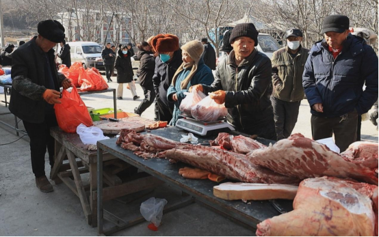 “买了一个羊腿,剩下羊蝎子,回家炖炖吃。孩子放假一回来,热热闹闹。”来自北京平谷的刘泉来提着一大袋子食物,脸上带着笑。来自北京顺义的刘俊也专门坐火车赶来:“买了大盖柿,还有豆腐,准备再去买点鲜猪肉。”
