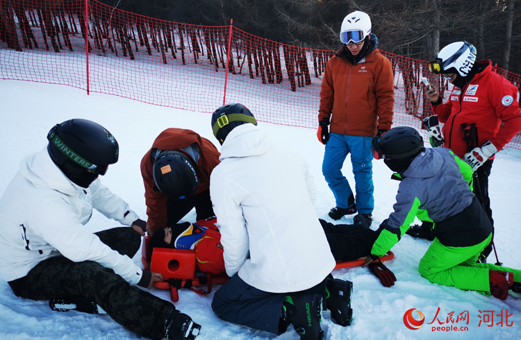 “冬奥滑雪医疗保障梦之队”云顶队在进行救治演练。 受访者供图