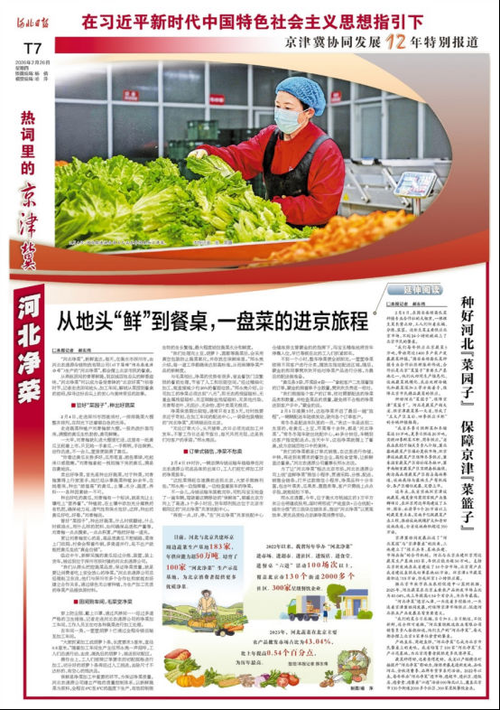 “河北净菜”进京入津,一头连着乡村振兴,一头连着京津冀协同发展,对保障京津市场供应、促进河北农业产业发展具有重要意义。