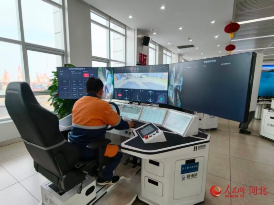 京唐港集装箱智慧码头控制中心内,工作人员通过数字孪生平台和无人车智驾系统实时监控码头作业情况,津唐国际集装箱码头有限公司总经理王志强表示:“智慧港口不仅是技术升级,更是发展理念转变。我们用5G、北斗定位等多元感知技术,实现了无人车的智能运行,辅以数字孪生技术,实现作业效率大幅提升,就是要让唐山港成为对外开放的重要窗口,让唐山的好产品走向全球,让全球资源服务唐山发展。”