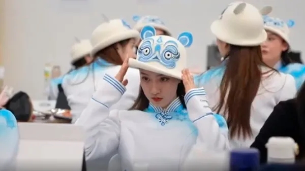 引导员可爱的虎头帽