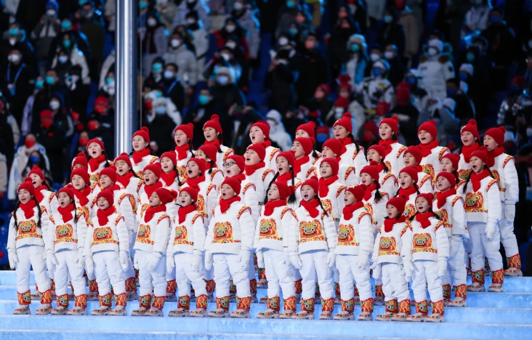 2月4日晚,第二十四届冬季奥林匹克运动会开幕式在北京国家体育场举行。这是“马兰花儿童合唱团”用希腊语在开幕式上歌唱。新华社记者 曹灿 摄