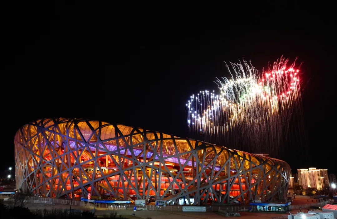 2月4日晚,第二十四届冬季奥林匹克运动会开幕式在北京国家体育场举行。这是焰火表演。新华社记者 王婧嫱 摄