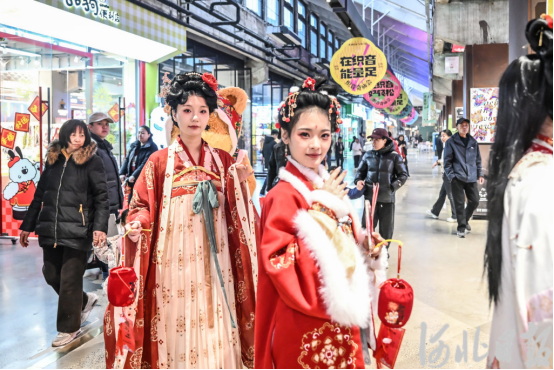3日3日,石家庄织音1953文化艺术园区举行元宵节汉服巡游活动。