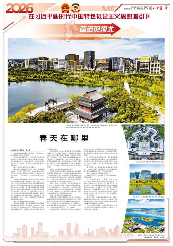 春天,在每一位建设者的滴滴汗水里,在每一栋建筑的数字身份证里,在每一次“雄安造”卫星的发射测试中,在每一个孩子的琅琅书声里,更在京津冀协同发展的时代宏图里。
