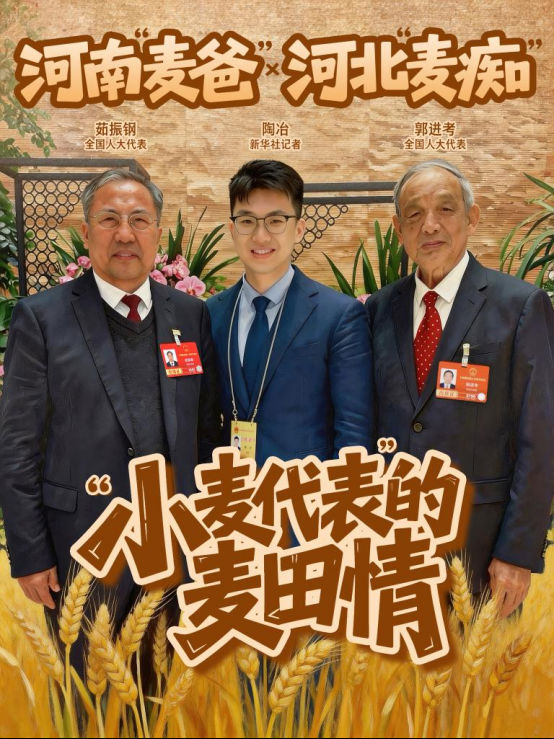 2026年全国两会,全国人大代表、河北省石家庄市农林科学研究院名誉院长郭进考和全国人大代表、河南科技学院小麦研究中心教授茹振钢又见面了。两位来自农业一线,扎根田野、深耕育种,今年再次相遇,按照约定,他们交换了新培育的小麦种子。通过跨区域协同育种,培育出产量更高、适应性更广、抗逆性更强的小麦新品种。