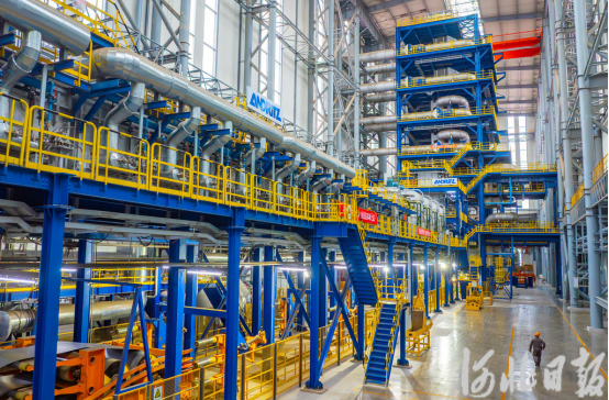 河钢集团唐钢公司员工在查看镀锌生产线。