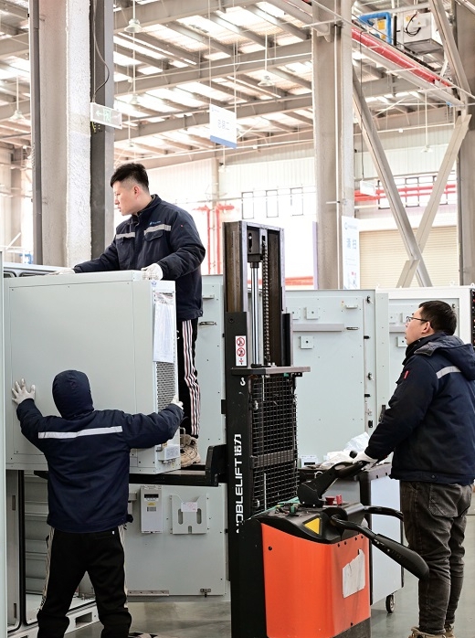 河北明阳瑞源储能科技有限公司工作人员正在进行装机工作。