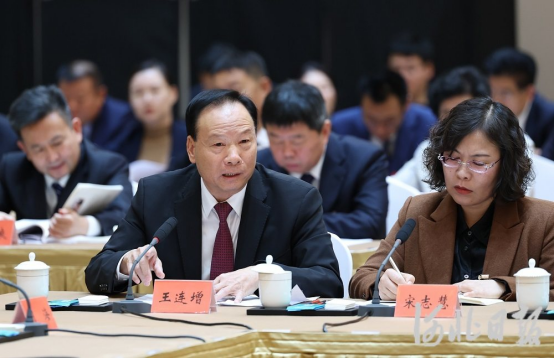 大会期间,河北省代表团全体代表认真参加审议,积极建言献策。 王连增代表(前排左一)在会议上发言。