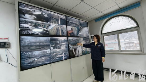 3月5日,兴隆县中冶水务有限公司中控室内,工作人员正在介绍污水处理情况。