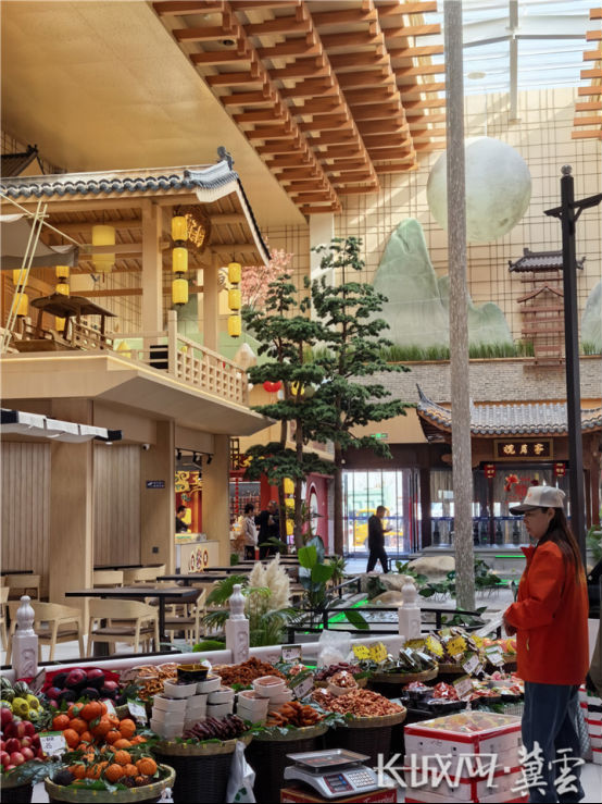 一进门,仿宋建筑的古韵扑面而来,水幕之后,舞蹈、古筝表演在“听雨阁”戏台轮番上演;保定驴肉、山东煎饼、天津麻花等地方风味应有尽有。旅客歇脚的同时,还能沉浸式体验“味觉+听觉+视觉”的三重享受。