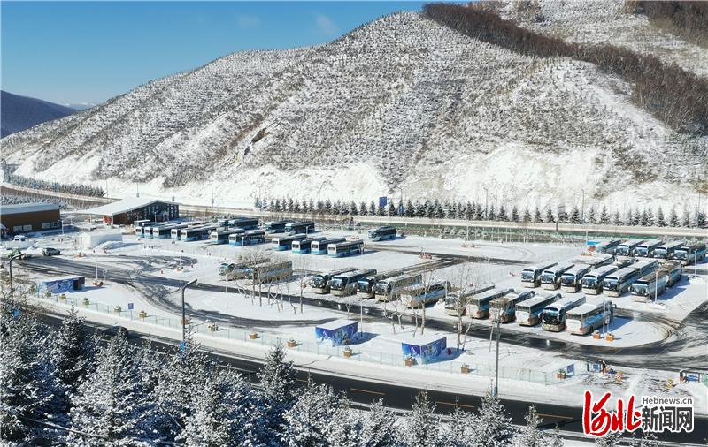 2月14日拍摄的北京冬奥会张家口赛区核心区运行的巴士车队。2月12日至13日,张家口迎来降雪。张家口赛区启动应急预案,铲冰除雪,及时保障车队正常运行。河北日报通讯员 樊连贵摄