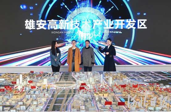 3月26日,雄安高新技术产业开发区内,讲解员在向参观者介绍开发区建设进展。