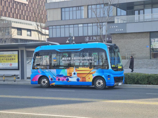 ↑车路协同自动驾驶巴士在雄安新区容东片区街道上行驶(3月20日摄)。