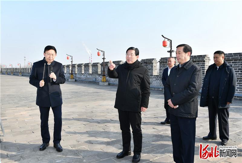 2月16日,省委书记、省人大常委会主任王东峰在石家庄市调研检查。这是王东峰登上正定古城东城墙,认真察看原新元高速改造提升和正定古城墙保护情况。 河北日报记者赵威摄