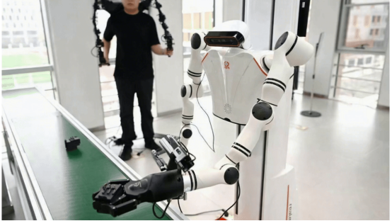 2026年3月17日,在中国雄安集团数字城市科技有限公司具身智能训练场,工作人员对机器人进行具身智能训练。