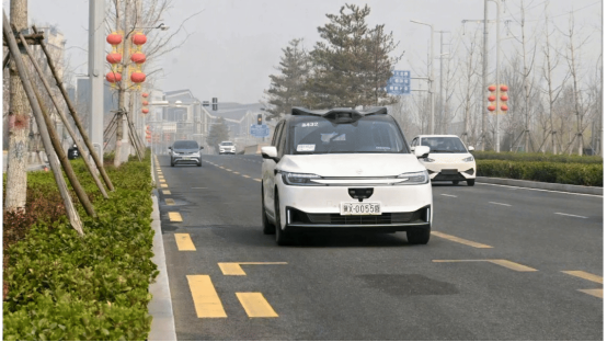 一辆无人驾驶网约车在雄安新区容东片区街道上行驶(2026年3月26日摄)。