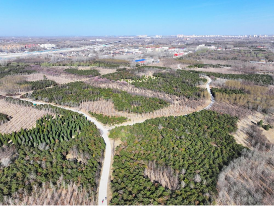 3月18日拍摄的雄安新区“千年秀林”(无人机照片)。