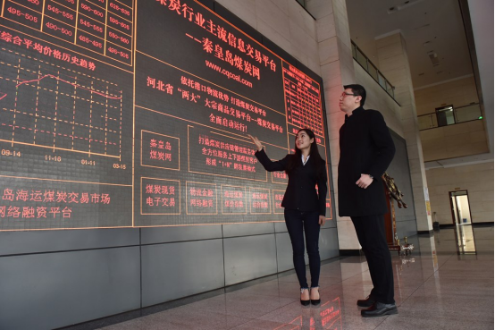 近日,在秦皇岛海运煤炭交易市场,工作人员正在向客户讲解环渤海动力煤指数。