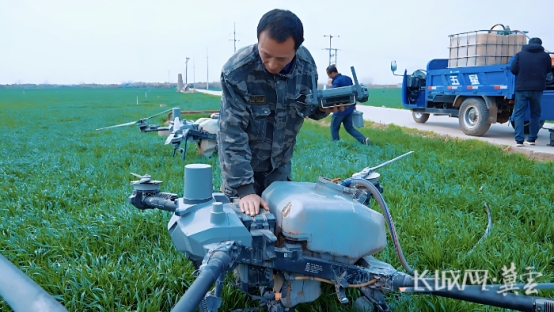 田埂另一头,无人机飞手张晓峰正在调试设备。螺旋桨嗡鸣声中,无人机腾空而起,水肥均匀洒落。“人工施肥又慢又累,还容易漏喷。”张晓峰盯着屏幕上的飞行轨迹,“无人机一天施肥几百亩,效率是人工几十倍,喷得匀、雾化好,精准控量不伤苗。”