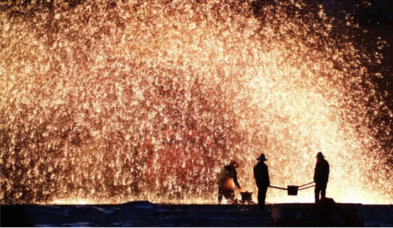 “蔚县打树花”表演。