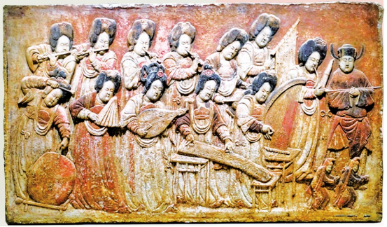 曲阳石雕——王处直墓出土的彩绘浮雕散乐图。