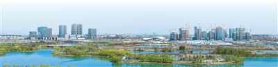 蓝绿交织、水城共融的雄安新区启动区。