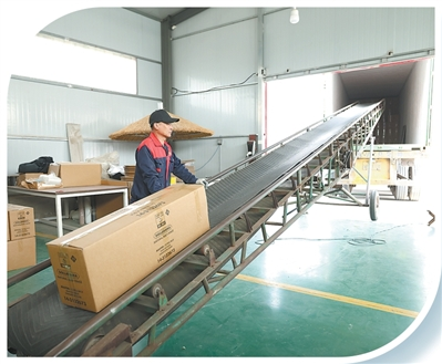 兆龙芦苇工艺专业合作社里,工人将准备出口的苇帘打包装车。