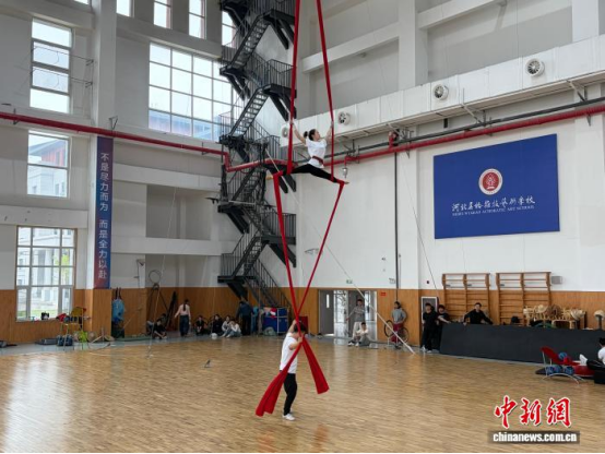 排练现场,可以看到大飞人、地圈、柔术等节目轮番上演,既有高空的惊险,也有地面的精巧。左朝峰介绍:“这台剧时长约一个小时,里面有高空杂技、柔术、舞蹈,还有相声,因为杂技本身就是百戏。我们想用杂技语言来讲述中国故事。”