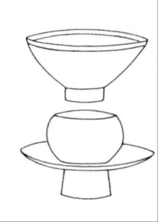 相信大家第一眼肯定以为把茶倒在上面的碗里,直接喝就行了。其实不然,这是一个整体的茶盏托,类似于现在的杯托,饮茶时上面需要再放一个茶盏,防止烫手。