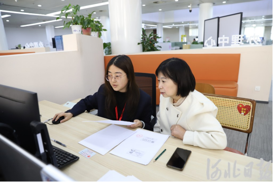 工作人员李家宁了解到,申令敏将公司设在邯郸市邯山区,其营业执照办理业务的审批主体是邯山区行政审批局。李家宁现场指导申令敏准备好材料,并协助其登录河北政务服务网完成申请。随后,李家宁通过电话与邯山区政务服务中心进行对接。很快,邯山区政务服务中心完成审批。