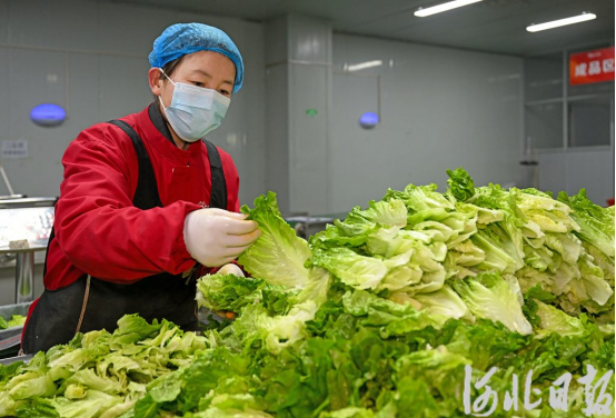 2月4日,河北农速源公司工人正在车间里加工净菜。