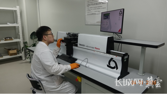 中塞(国际)轴承产业共享实验室检测人员通过精密测长仪测量送检的环规母件。