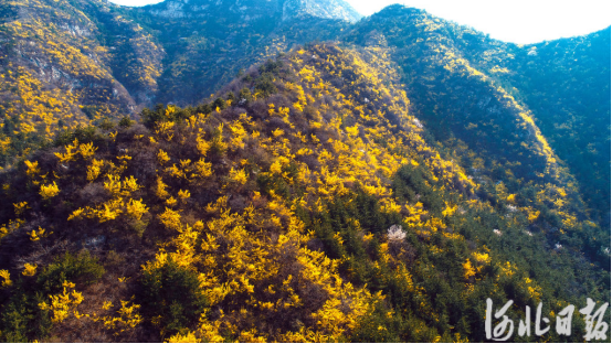 春风拂过太行山,邯郸市涉县固新镇西山片区千余亩连翘随风摇曳,生机盎然。曾经水土流失严重、植被稀疏的荒山,如今林草茂密,谷坊、护地堰、蓄水池等水土保持工程错落分布,为连翘生长提供了良好的条件。
