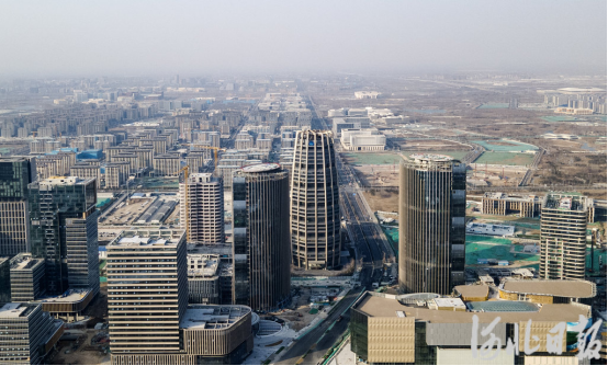 3月19日拍摄的雄安国贸中心及京雄快线等项目。