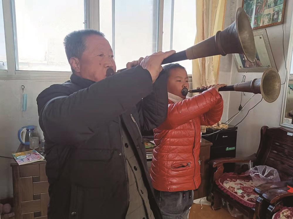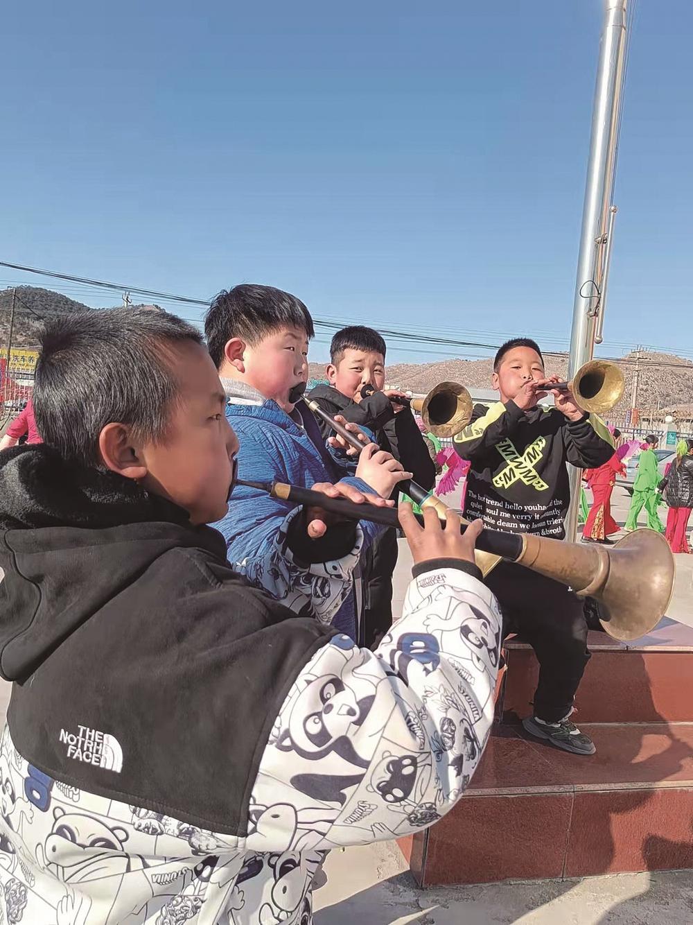 谈起教孩子学习唢呐,柴玉江说不光可以让他们放下手机,学到一门手艺,还能锻炼他们的耐力,更重要的是把老一辈留下来的好玩意儿传承下去。为此,柴玉江创新了好多曲目,能吹奏经典歌曲和年轻人喜欢的曲子。这个春节期间,哪里有文艺表演活动,柴玉江就带着这群“新伙伴”一起去表演。