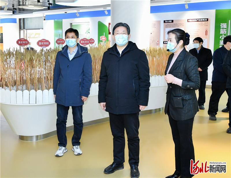 2月28日上午,省委书记、省人大常委会主任王东峰在石家庄,就春耕春管、农业产业化等工作进行调研检查。这是王东峰在藁城区农业科学研究所,听取优质强筋小麦研发工作汇报。河北日报记者赵威摄