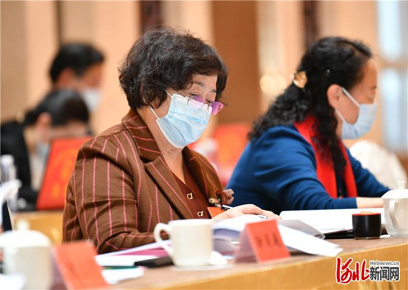 3月7日,河北代表团的代表们在小组会上认真记录。 河北日报记者 赵威摄