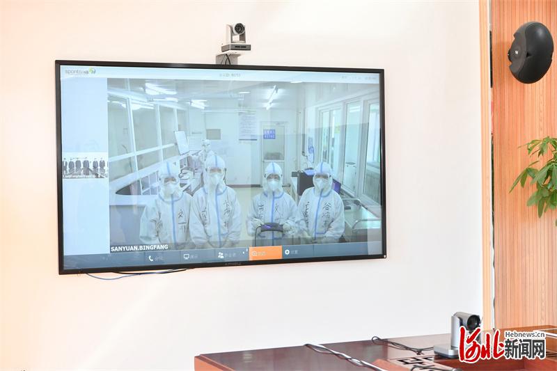 3月14日,省委书记、省人大常委会主任王东峰在廊坊市调研检查疫情防控工作。这是王东峰在廊坊市人民医院东院区远程会诊中心,通过视频与战斗在一线的医护人员连线,听取工作汇报,代表省委、省政府,向广大医护人员表示慰问和感谢。 河北日报记者赵威摄