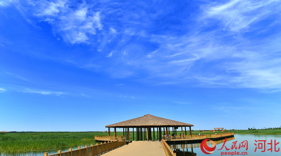 蓝天白云映照下的白洋淀。 刘向阳摄