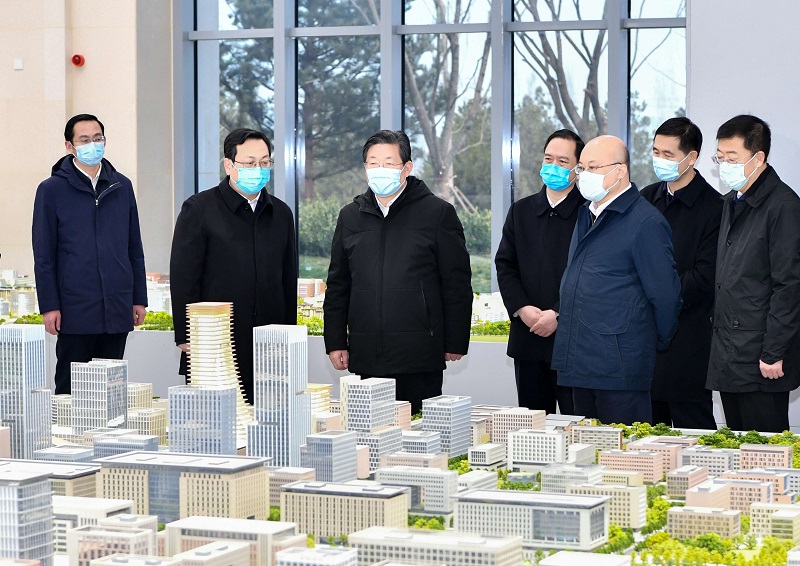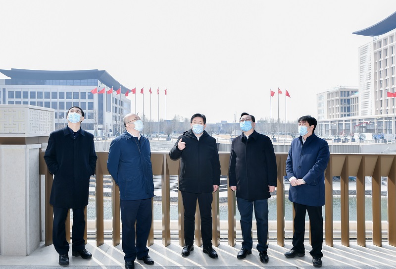 3月19日至20日,省委书记、省人大常委会主任王东峰在雄安新区调研检查。省委副书记、省长王正谱参加调研检查。这是王东峰、王正谱在新区启动区综合服务中心,详细察看布局优化、功能完善等情况。河北日报记者 赵威 摄