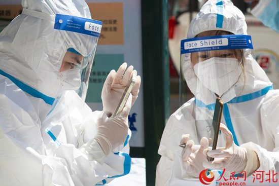 张振是沧州市人民医院胃肠外科的护士。去年,他曾到藁城支援核酸采集工作。这一次,接到紧急任务通知后,有核酸采集经验的他再次与同事奔赴核酸采集点。“前几天我们在河西北街社区采集核酸,每人每天大概要采600余人的样本。”电话里,张振的声音略微沙哑。