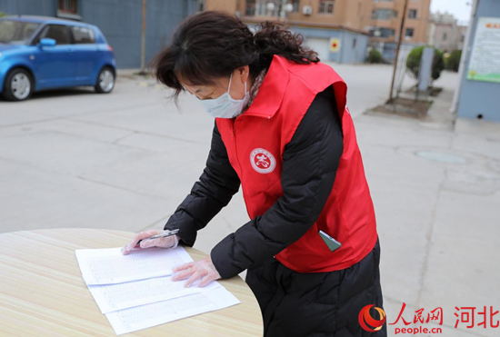 河间市的志愿者身穿红马甲在防控一线提供志愿服务。 李世文摄