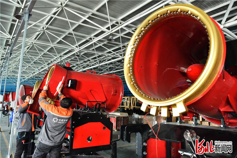 张家口卡宾滑雪装备制造有限公司工人正在组装造雪机。 河北日报通讯员 陈晓东摄