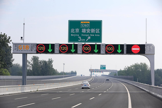 据统计,雄安新区高速公路网在新区周边共设置出入口37个,通行车道356条,日均车流量达到6.7万辆次,交通转换便捷高效,网络化的对外高速公路通道有力支撑起新区发展和对外联络的交通骨骼。新区周边干线公路使建材运输时间缩短60分钟以上,日均车流量达到1.8万辆次,其中中、重型车辆占比70%以上,有力保障了新区建设需求。