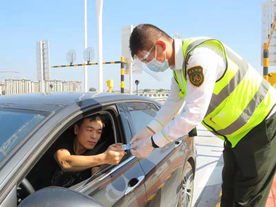 司乘正在通过京雄高速雄安站口,领取通行卡。 河北省交通运输厅供图