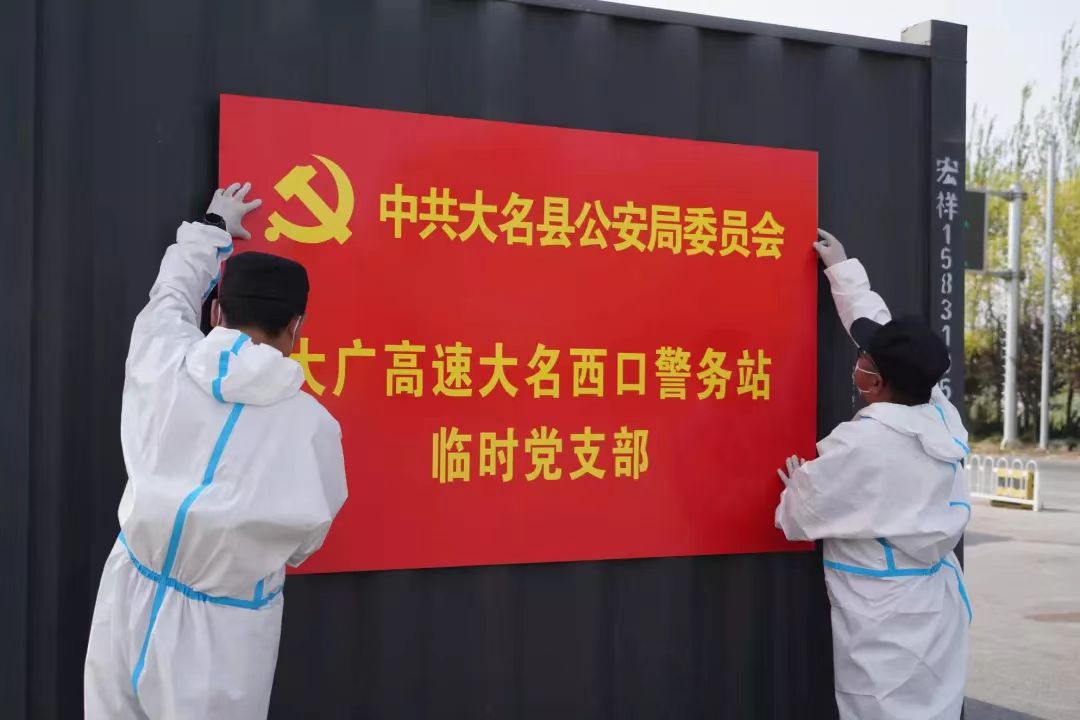 为加强疫情防控,大名公安充分发挥基层党支部的战斗堡垒作用和党员干部先锋模范作用,在一线设立临时党支部,做到关键时刻有组织在,关键岗位有党员在。“临时党支部的成立,既是广大党员冲锋在前的‘催征鼓’,也是全体民警抗疫护民的‘作战令’。”大名县公安局政委李军辉说。