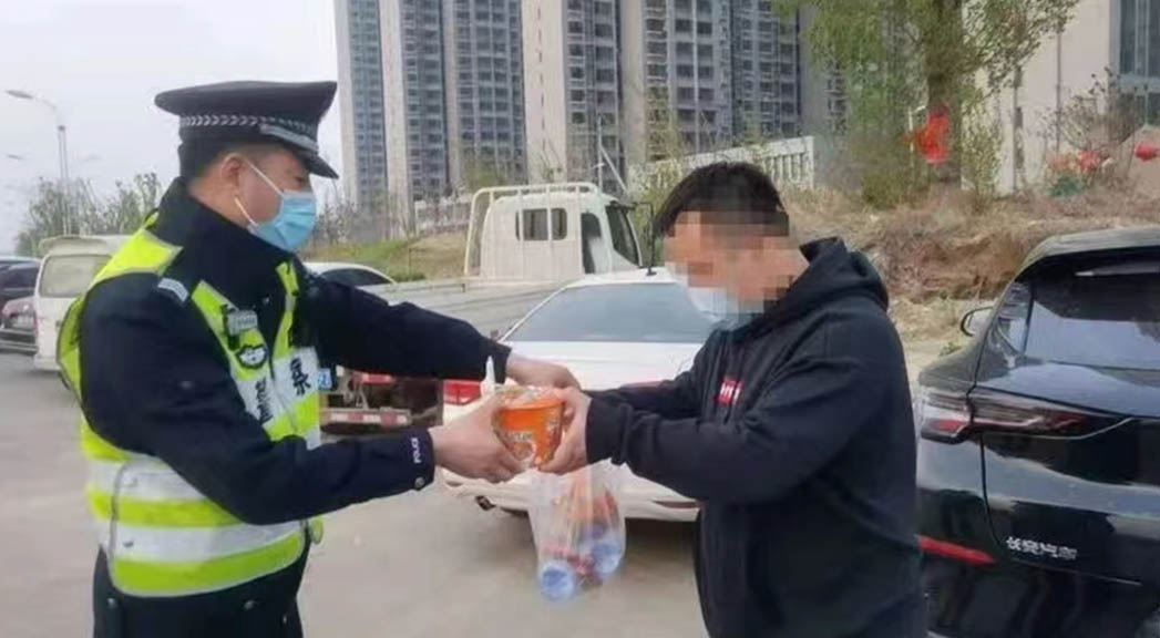执勤民警为滞留人员送来热乎乎的饭菜。 邯郸市公安局供图